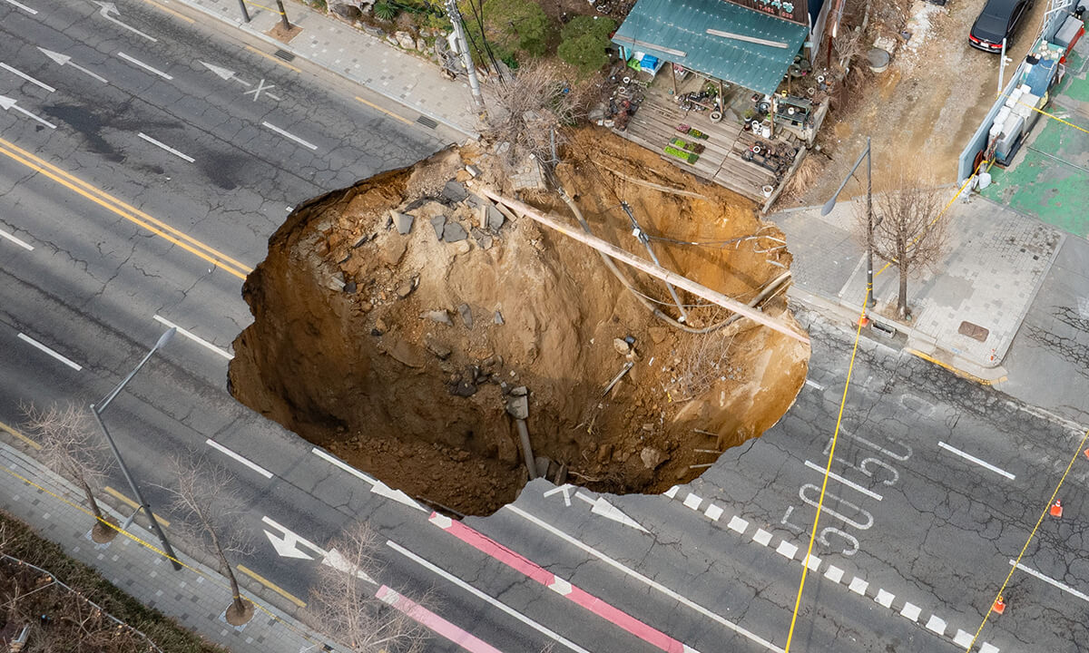 멀쩡해 보이던 도로에 거대한 구멍이 생겨버리고 그 속으로 차와 사람이 빨려 들어갈 수 있는 싱크홀 사고는 이제는 결코 영화 속 이야기가 아닌 것 같아요.