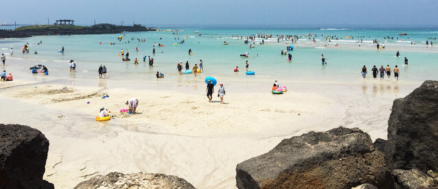 제주의 바다는 푸르른 물빛과 부드러운 백사장, 여유로운 분위기까지 모두 갖춰져 있어서 누구나 만족할 수 있는 피서지랍니다.
