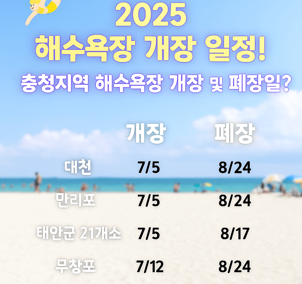🏖️ 충청 해수욕장 개장 및 폐장 일정
