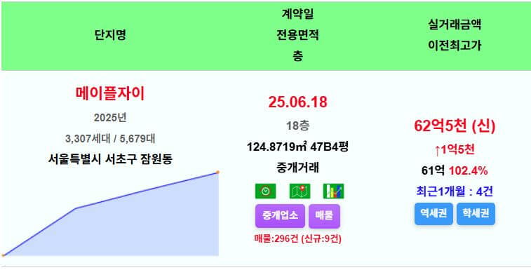 | 서초구 | 메이플자이 | 47평 | 62.5억 |